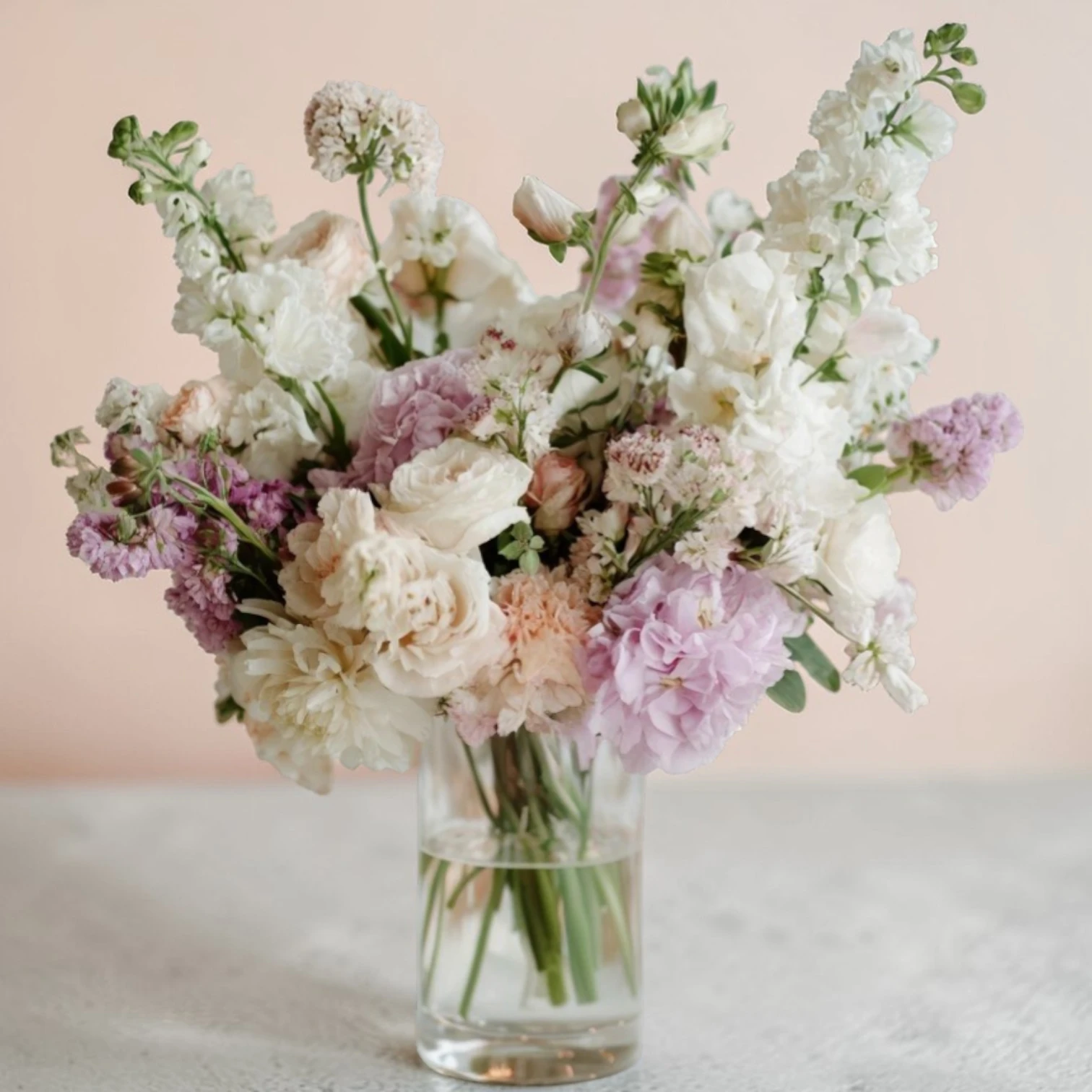 Crafted with care, this lush bouquet evokes the charm of a serene garden in bloom. The pastel color palette conveys gentle elegance, making it an ideal centerpiece for weddings, anniversaries, or any special occasion.