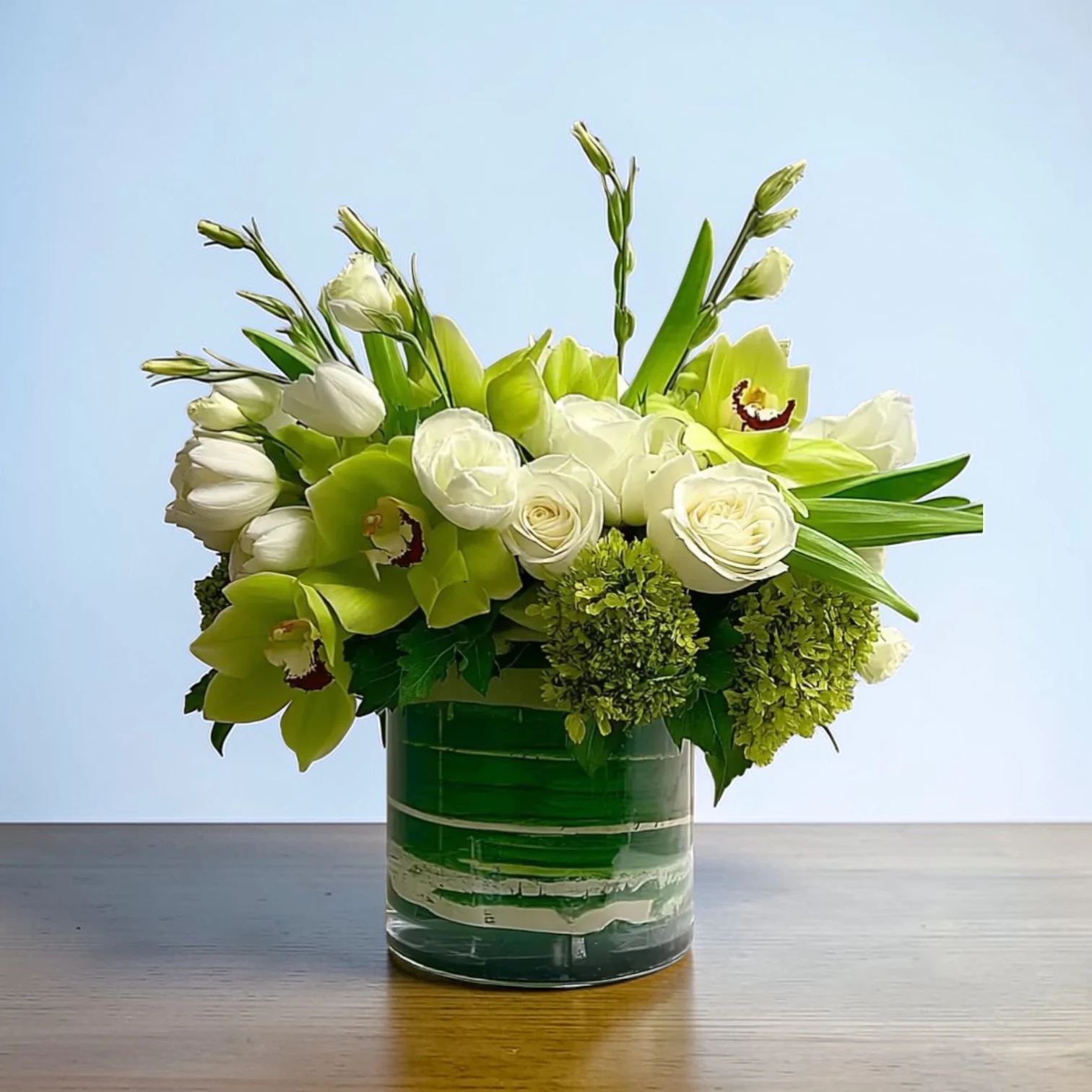 Whether you’re celebrating life’s special moments or simply elevating your home decor, this bouquet is a versatile centerpiece. The vibrant blend of tulips, roses, and orchids creates a harmonious balance, making it an ideal gift or statement piece for events, gatherings, and personal enjoyment.
